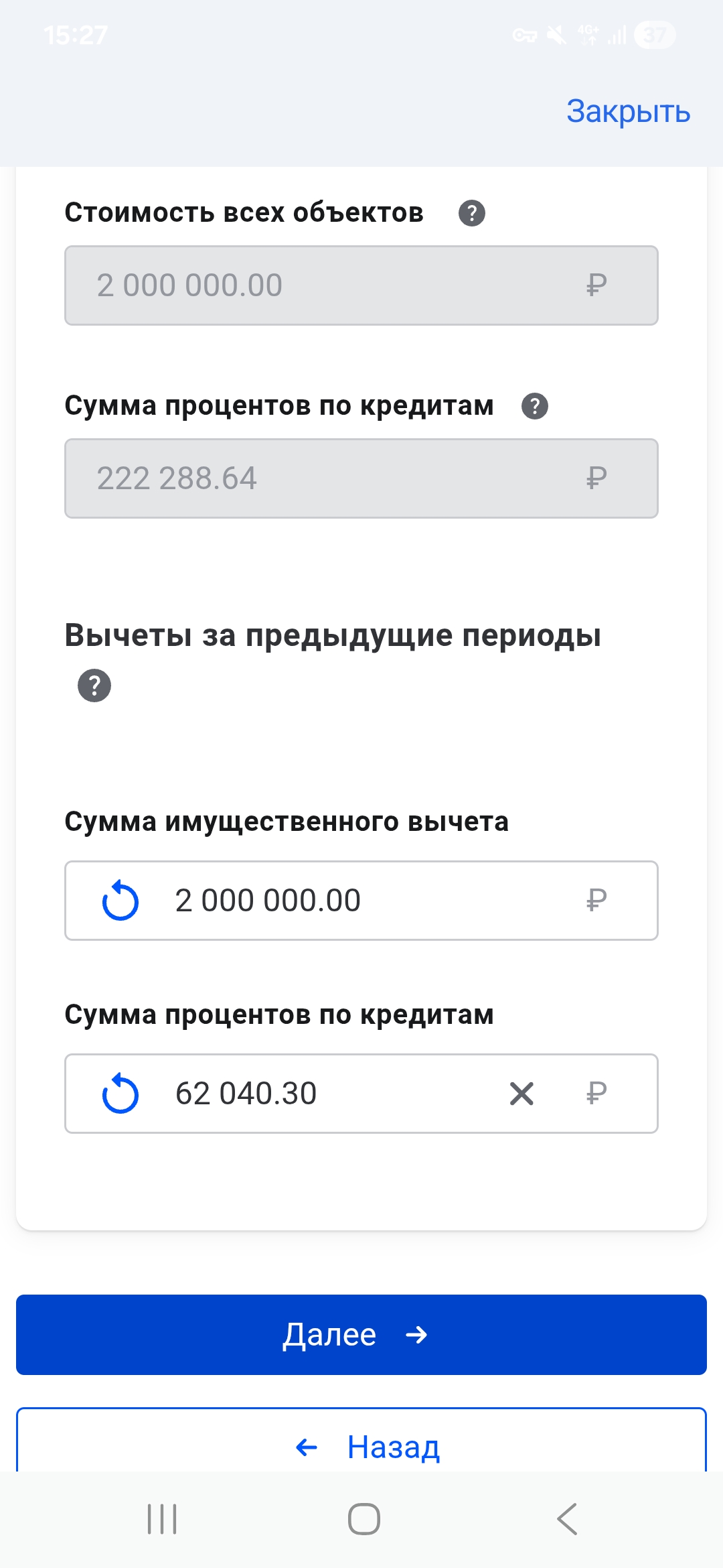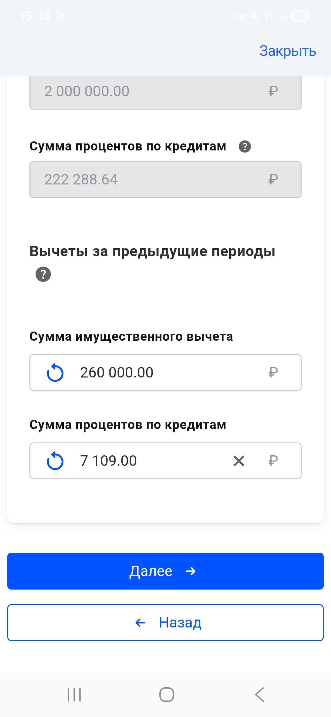 Здравствуйте. Да за один и тот же получается. Указала только проценты. В этих графах я ввожу суммы? Полученный вычет 267109 всего я получила