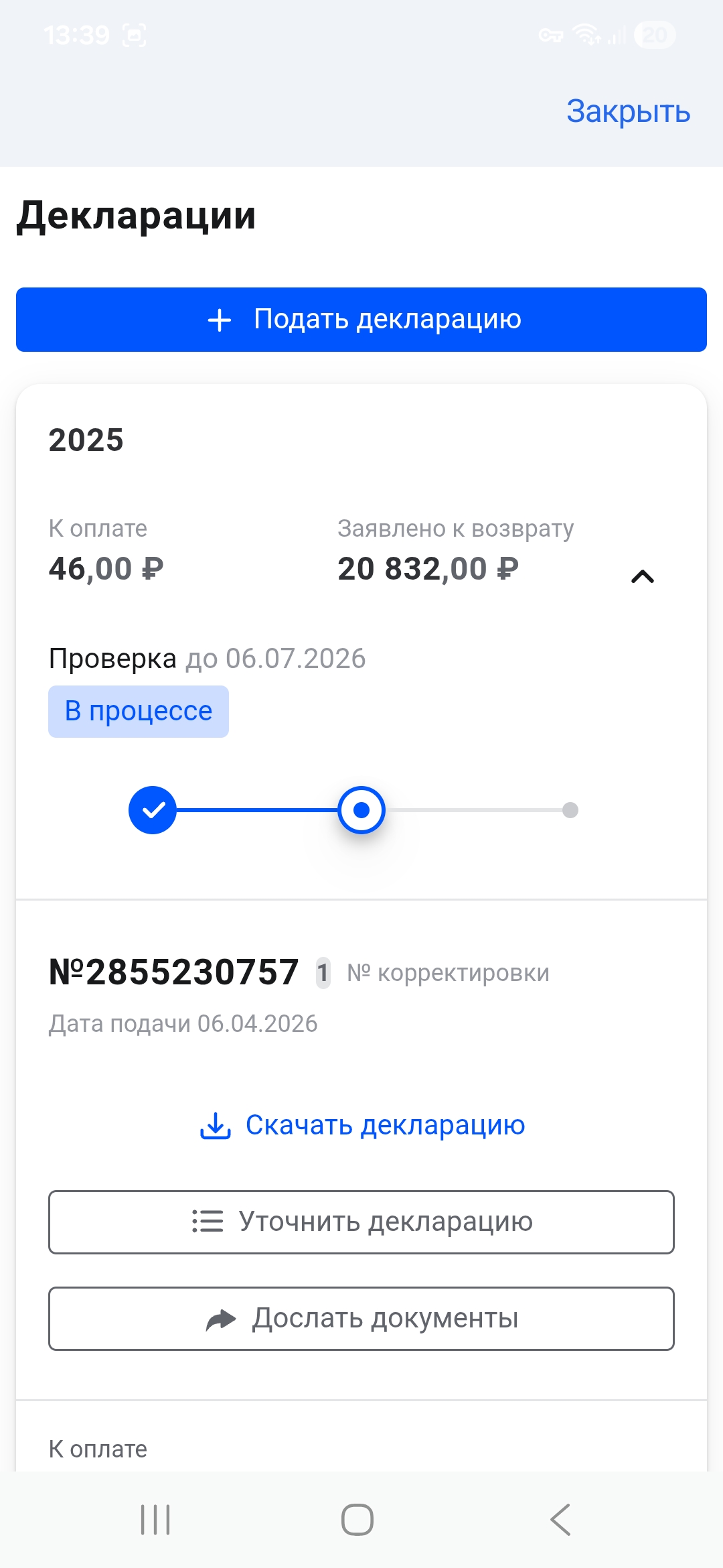 Образовалась задолженность после подачи утонченной декларации.