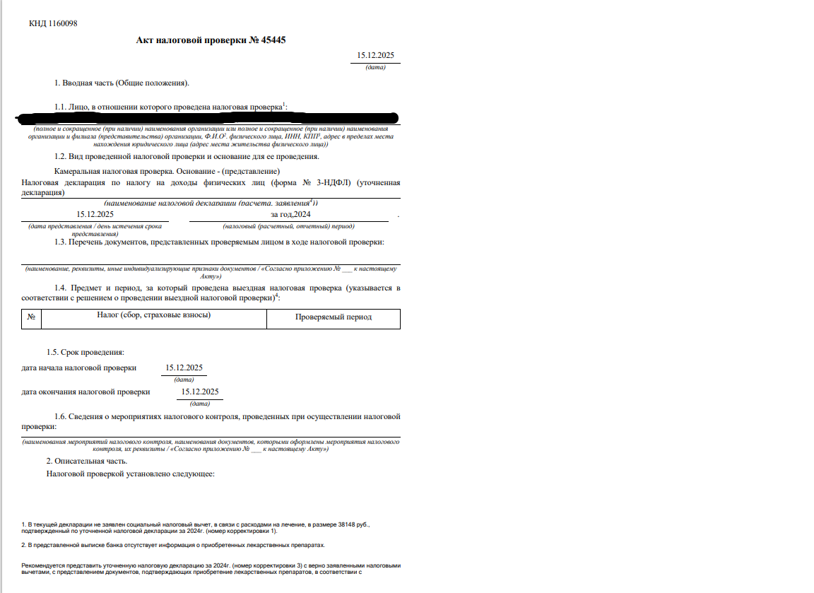 Судя по акту проверки, вы дали нам неполную информацию, на основании которой дать дельный совет невозможно. Это ваша не первая декларация за 2024 год. Что было в первой? Какие вычеты заявляли, какие документы представляли, какой результат получили?