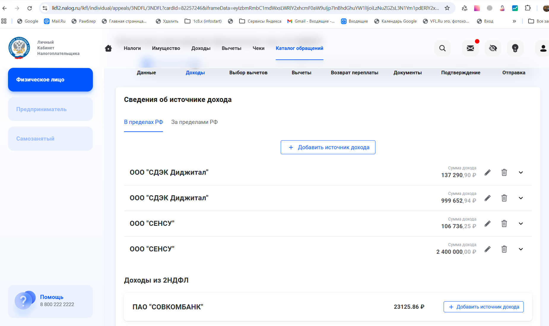 Обратил внимание: у меня одна справка на фитнес загружена налоговой. Так вот, если я нажимаю "Добавить" на ней, тогда сумма включается в сумму к возврату. Справки, которые я с бумажных носителей внёс, как будто игнорируются и игнорируются вычеты на детей.