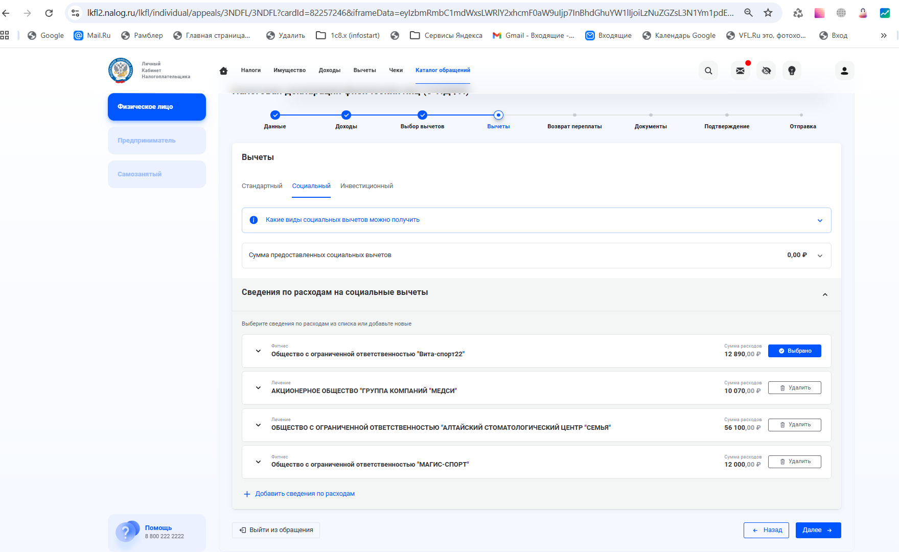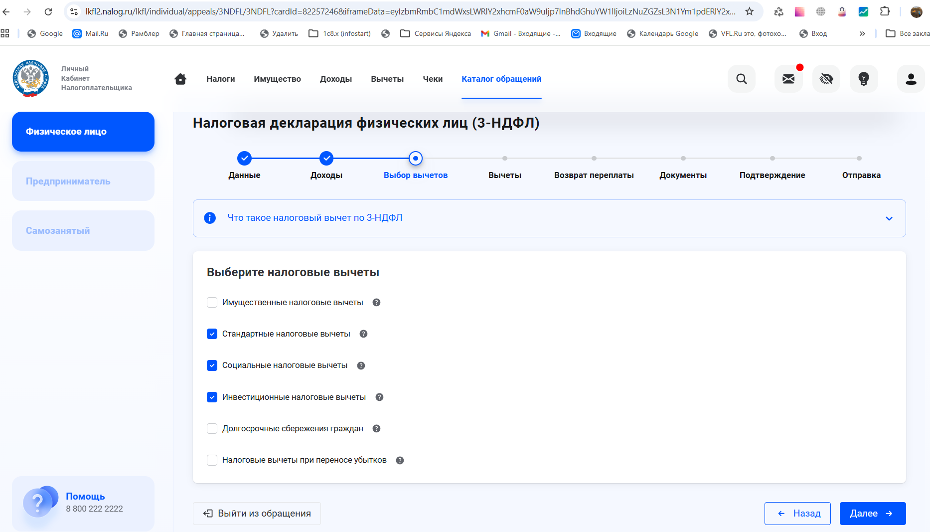 Сумма вычета к возврату в 3НДФЛ ЛК налоговой не учитывает социальный и стандартный вычеты